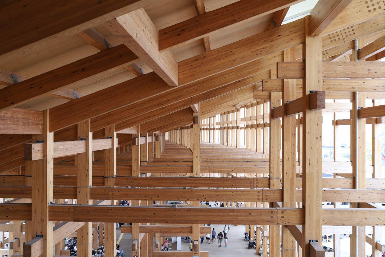 使用されている木材はCLT、「クロスラミネイテッドティンバー(Cross Laminated Timber)」で、閉幕後は公園のベンチ等で再利用されるそう。またどこかで会えるかも